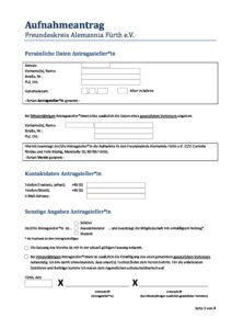 Aufnahmeantrag-Freundeskreis Alemannia Fürth e.V. Download zum Ausfüllen und Datenschutzerklärung ALT